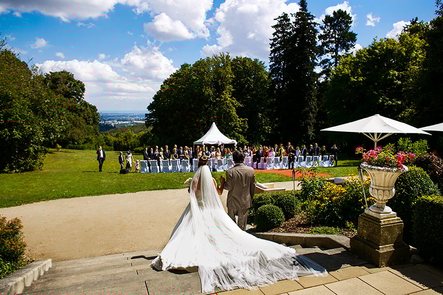 Die Villa Rothschild ist kein Stadthotel und genau das macht das Ganze zu einer intimen Oase für eure Feierlichkeiten in besonderer Atmosphäre. Nur ca. 20 Autominuten entfernt vom Frankfurt Flughafen (sehr praktisch bei Hochzeiten mit vielen internationalen Gästen), in kürzester Entfernung zum Stadtzentrum und dem Hauptbahnhof der Main-Metropole offeriert das 5-Sterne-Luxushotel Hochzeitspaaren und Ihren Gästen mit höchsten Ansprüchen den Aufenthalt und die Feierlichkeiten. Bei gutem Wetter hat man einen tollen Blick auf „Mainhatten“ und auch für freie Trauungen bietet der idyllische Privatpark den perfekten Rahmen für eine romantische Zeremonie unter freiem Himmel.
